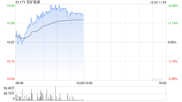 兖矿能源(01171)盘中涨超2%,截至发稿,股价上涨1.66%,现报10.44港元,成交额1.21亿港元。