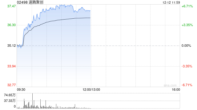 速腾聚创(02498)早盘股价上涨6.44%,现报37.38港元,成交额3.54亿港元。